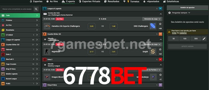 O 6778bet oferece uma grande seleção de opções de apostas em e-sports com probabilidades competitivas